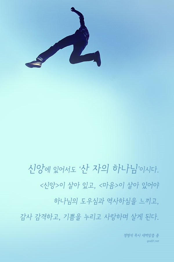 <신앙>이 살아 있고, <마음>이 살아 있어야 하나님의 도우심과 역사하심을 느끼고,