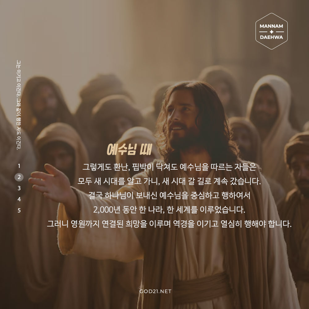 예수님 때 그렇게도 환난, 핍박이 닥쳐도 예수님을 따르는 자들은 모두 새 시대를 알고 가니, 새 시대 갈 길로 계속 갔습니다.