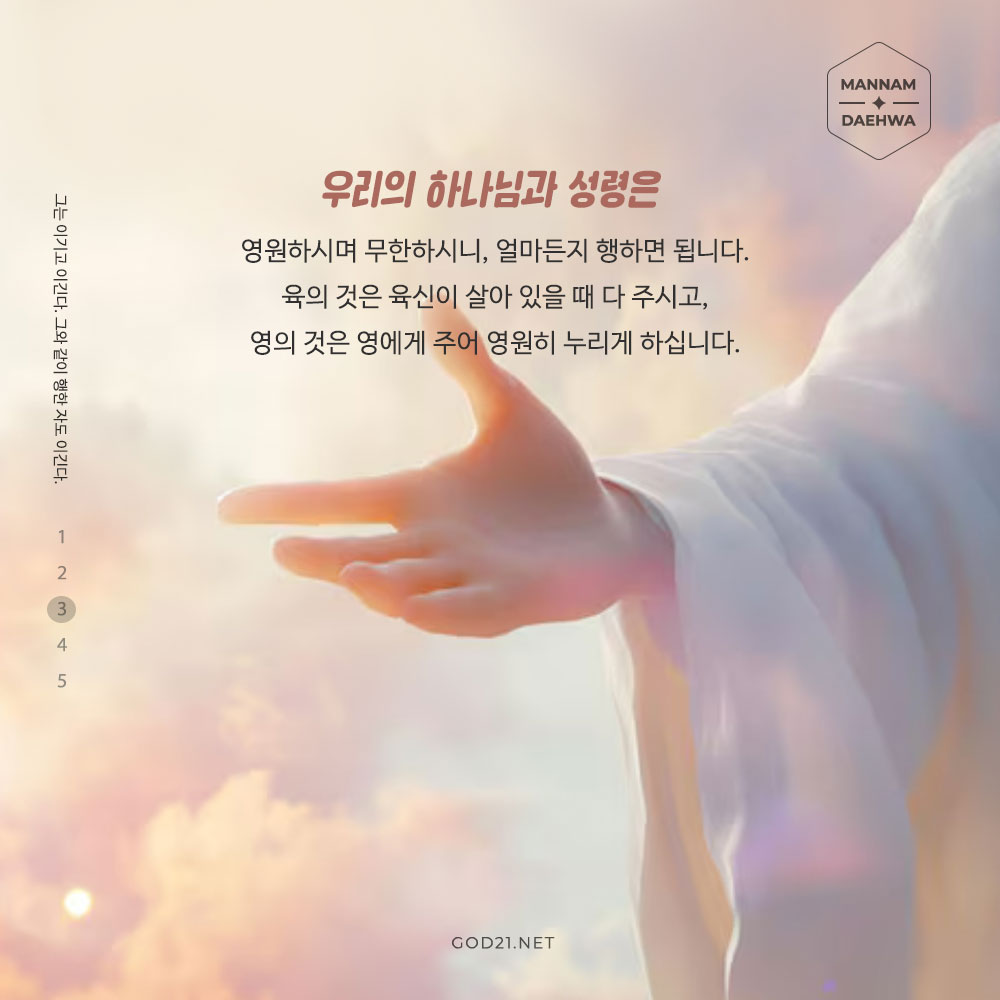 항상 두려워하지 말고 전능자 하나님께 염려와 걱정을 모두 맡기고, 하나님께 최고의 영광을 돌리고 사랑하며 살아가는 여러분 되길 주님의 이름으로 축복합니다.