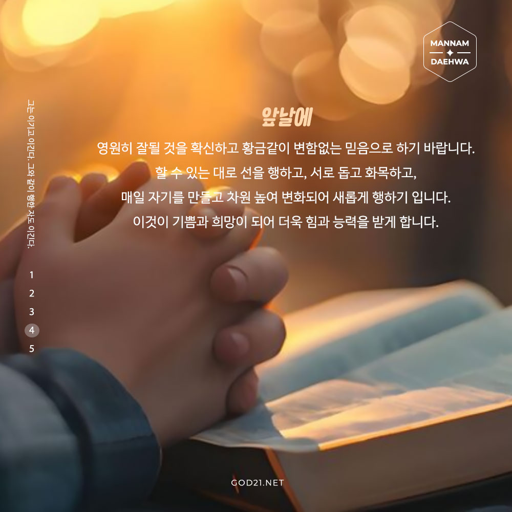 앞날에 영원히 잘될 것을 확신하고 황금같이 변함없는 믿음으로 하기 바랍니다.