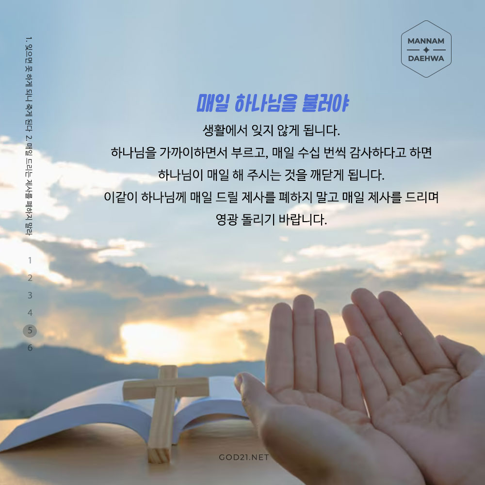매일 하나님을 불러야 생활에서 잊지 않게 됩니다.