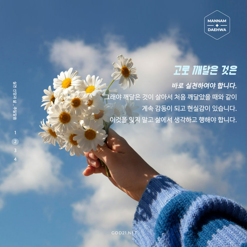 고로 깨달은 것은 바로 실천하여야 합니다.