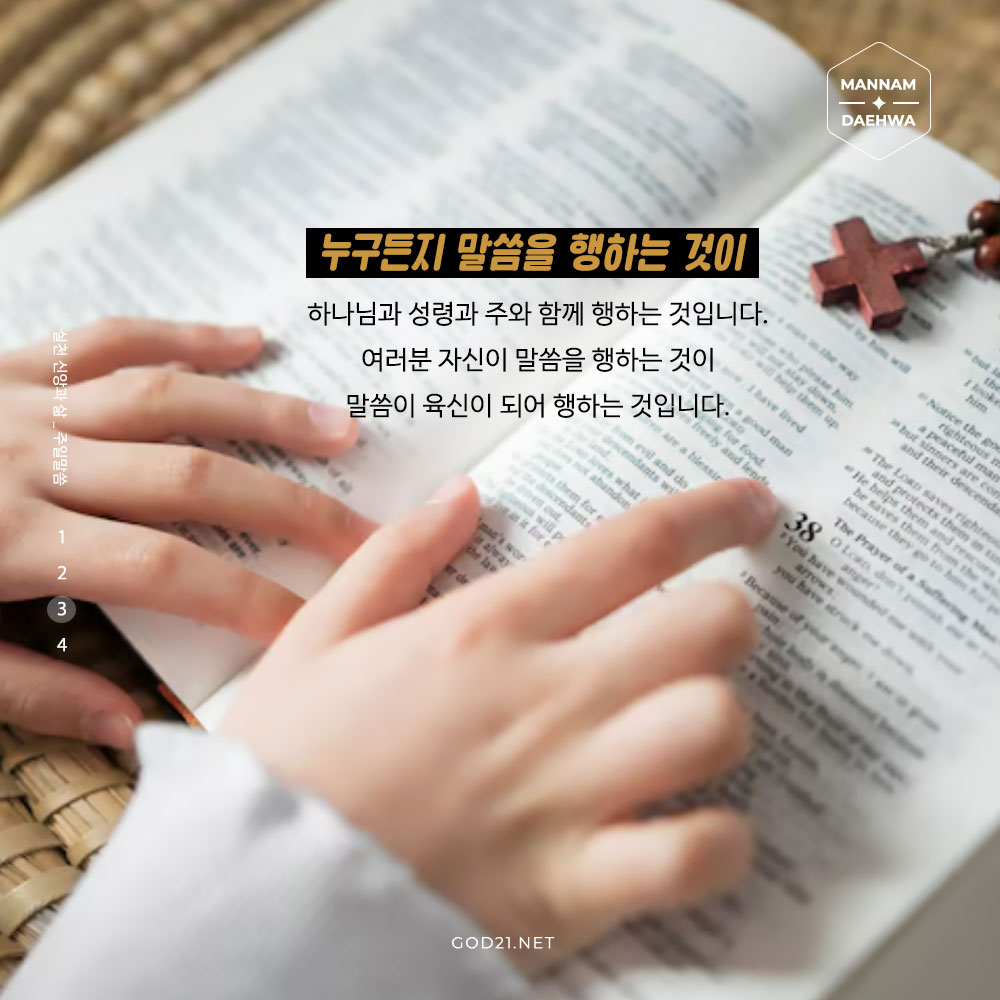 여러분 자신이 말씀을 행하는 것이 말씀이 육신이 되어 행하는 것입니다.