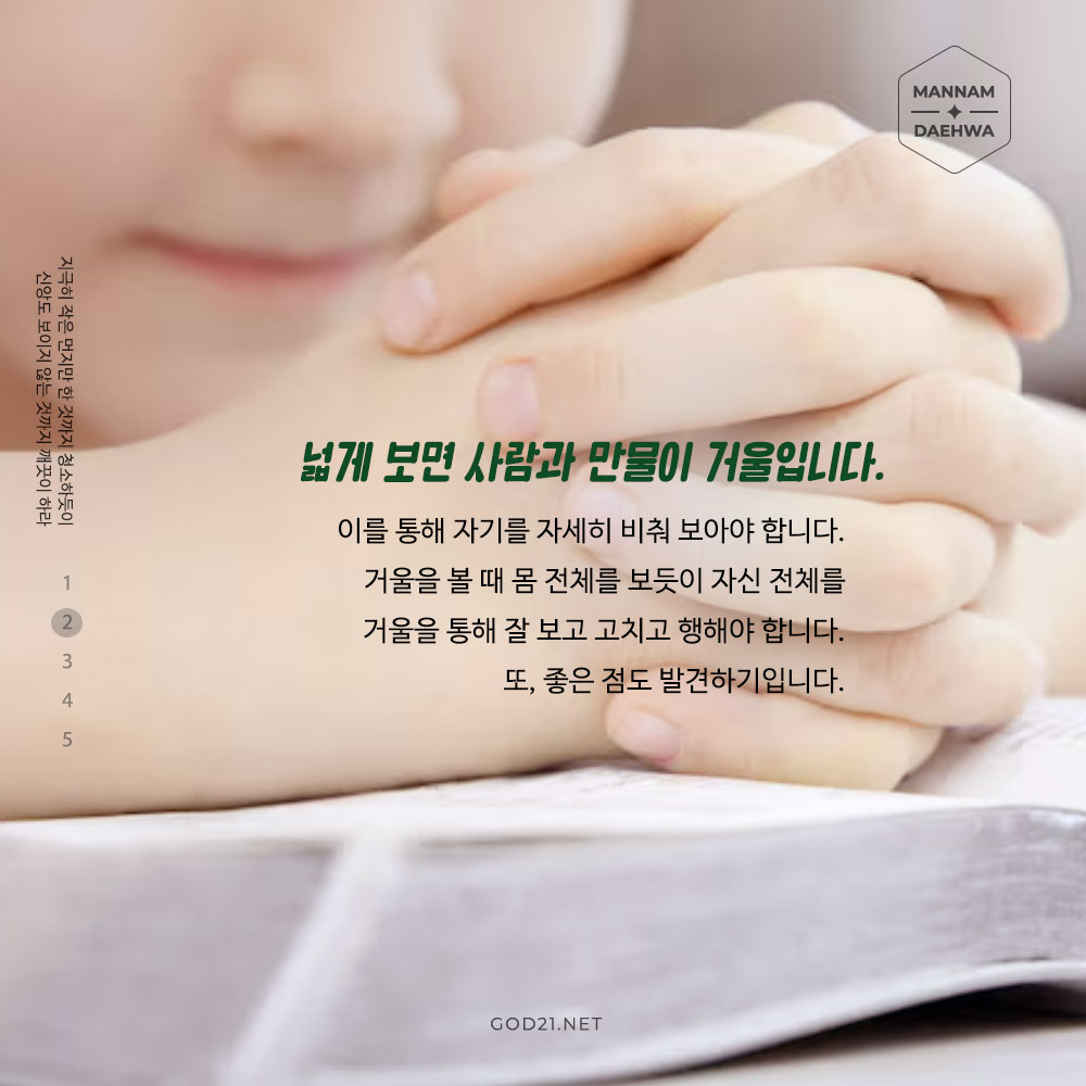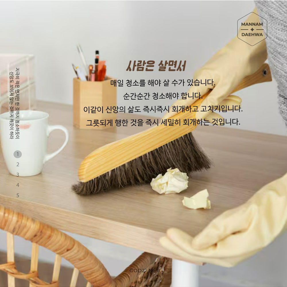 지극히 작은 먼지만 한 것까지 청소하듯이 신앙도 보이지 않는 것까지 깨끗이 하라