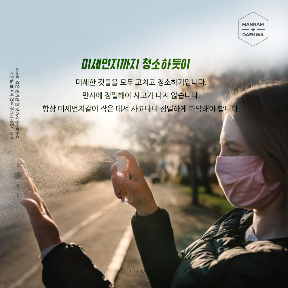 미세먼지는 계속 날리니 매일 청소하고, 마스크 쓰는 것이 최고입니다.